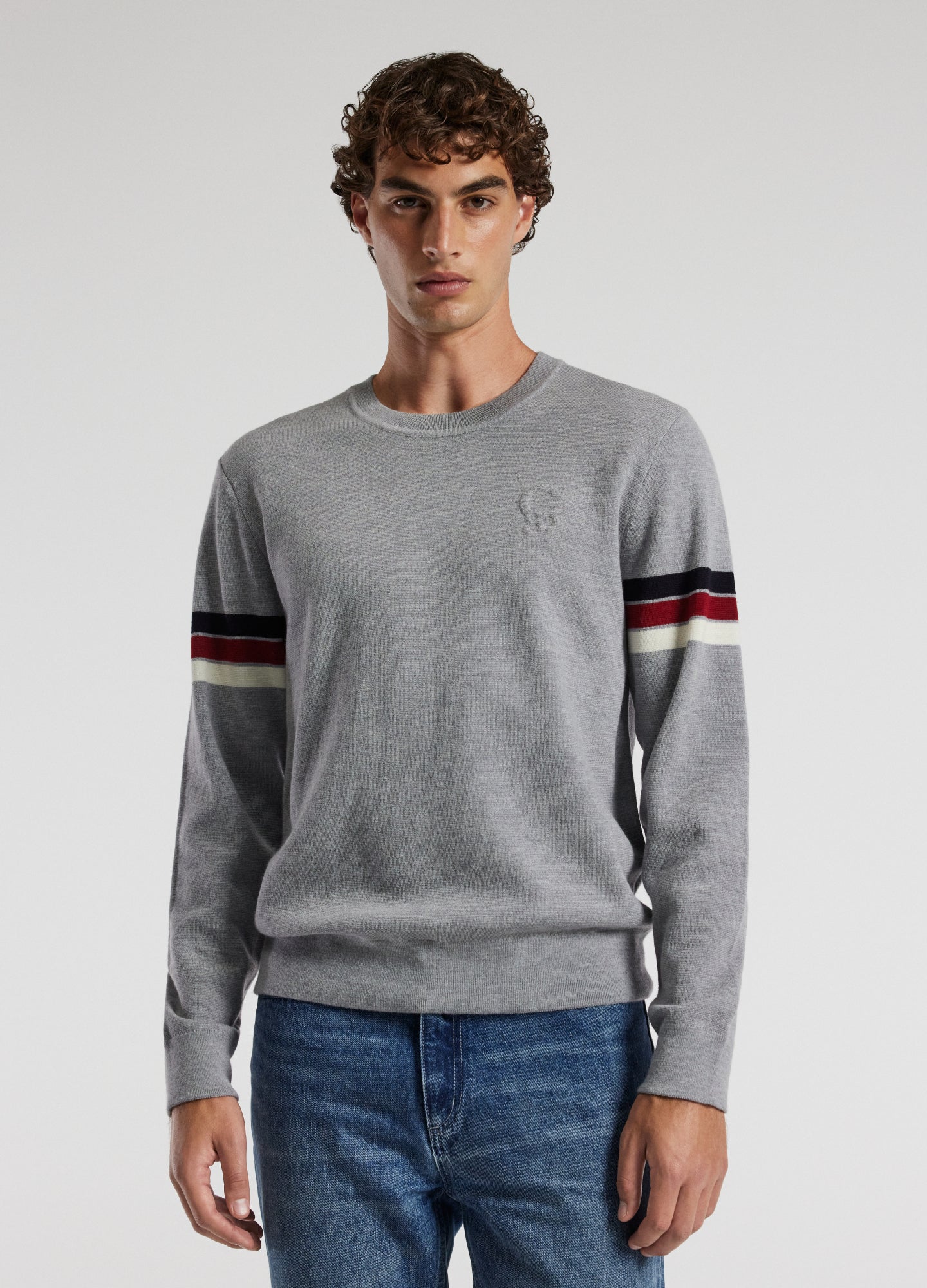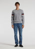 Contrast Stripe Crew Sweater Silver