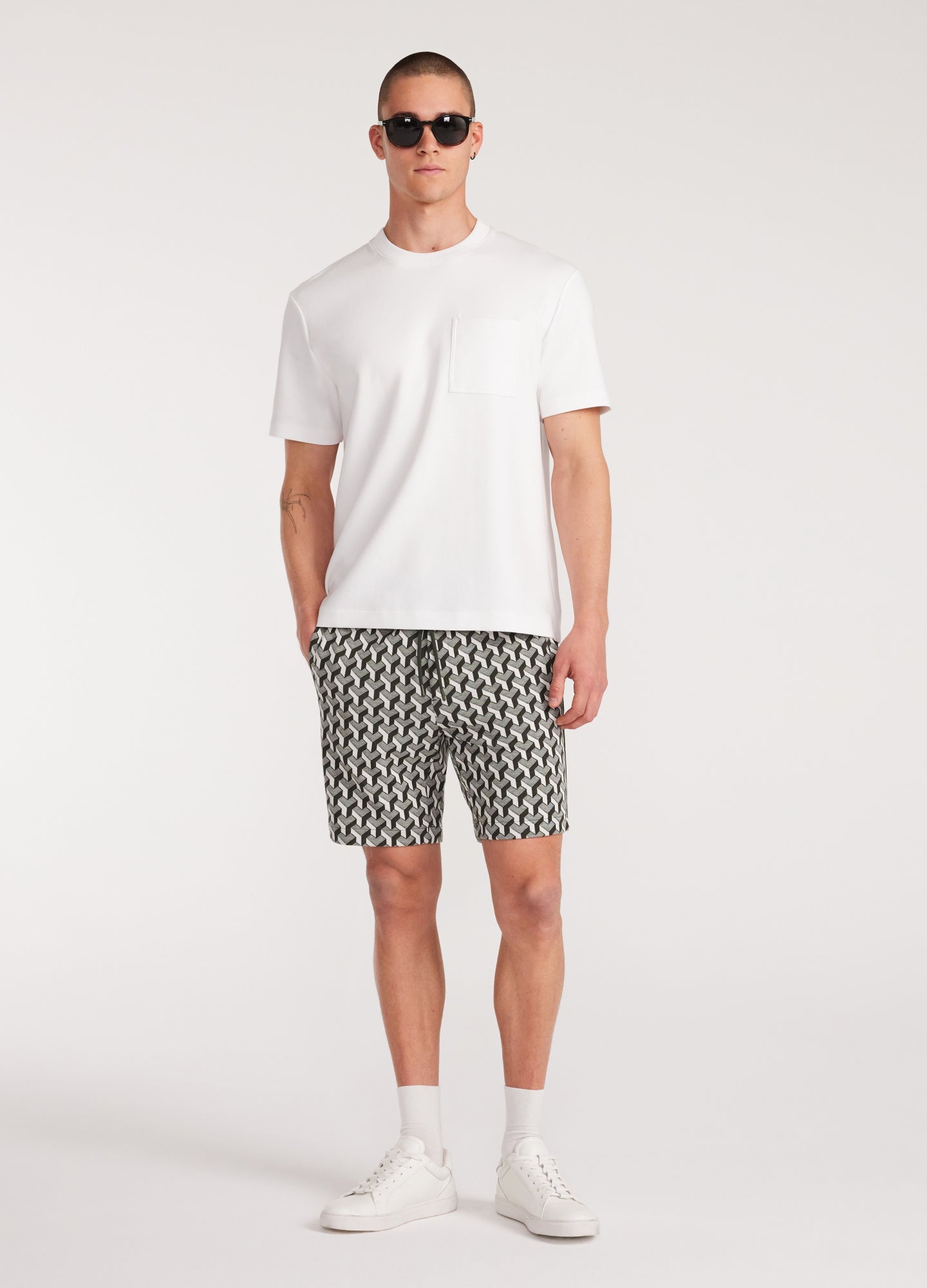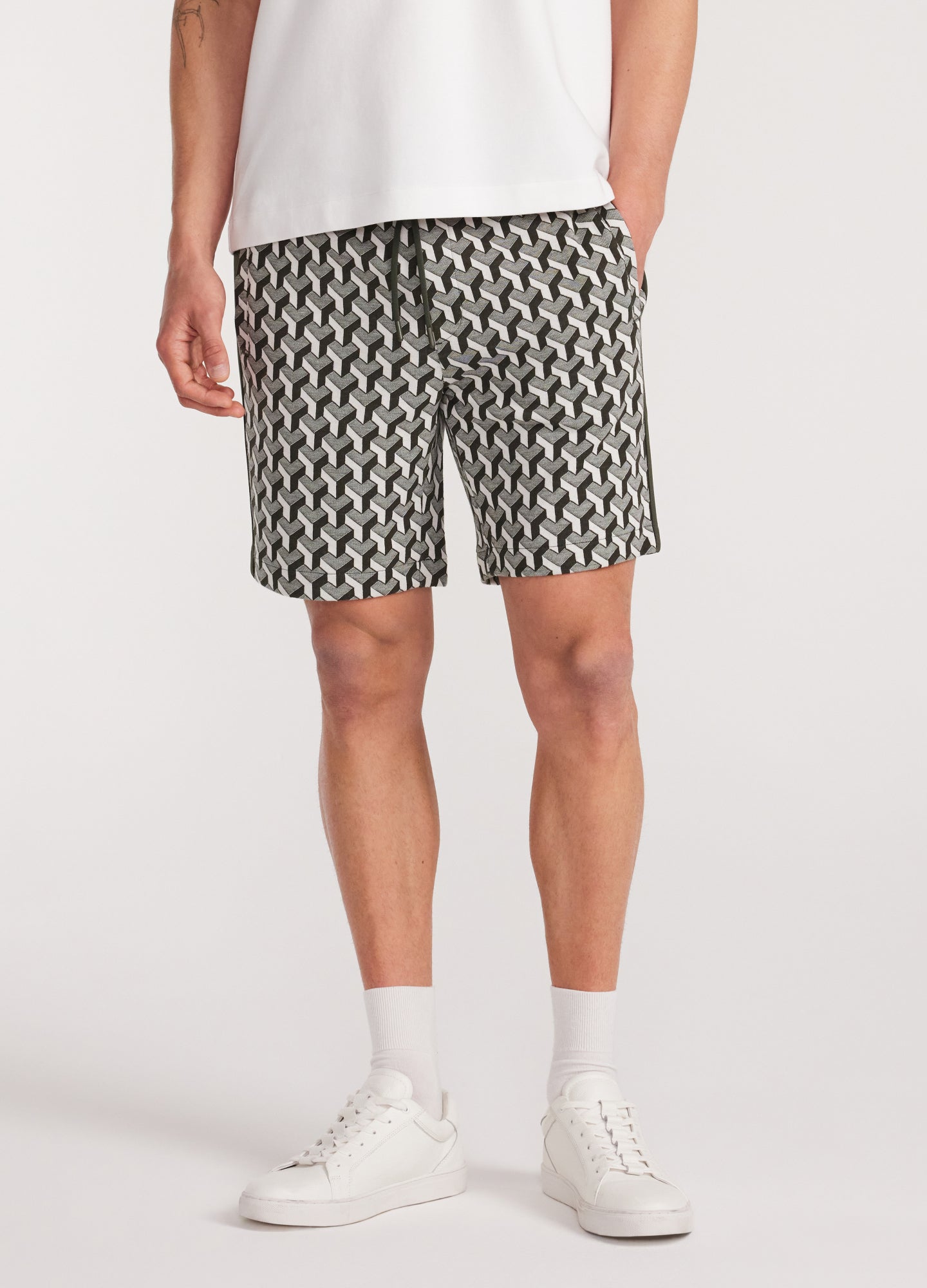 Our Jacquard Sweat Shorts are a core wardrobe staple, suited to days in transit and slow-paced weekends. Featuring engineered textural rib-knit waistband detail and crafted from a mercerised cotton blend, they are cut for a relaxed fit. Pair them back with the matching short-sleeve sweatshirt for an off-duty look, or dress them up with a tonal polo.