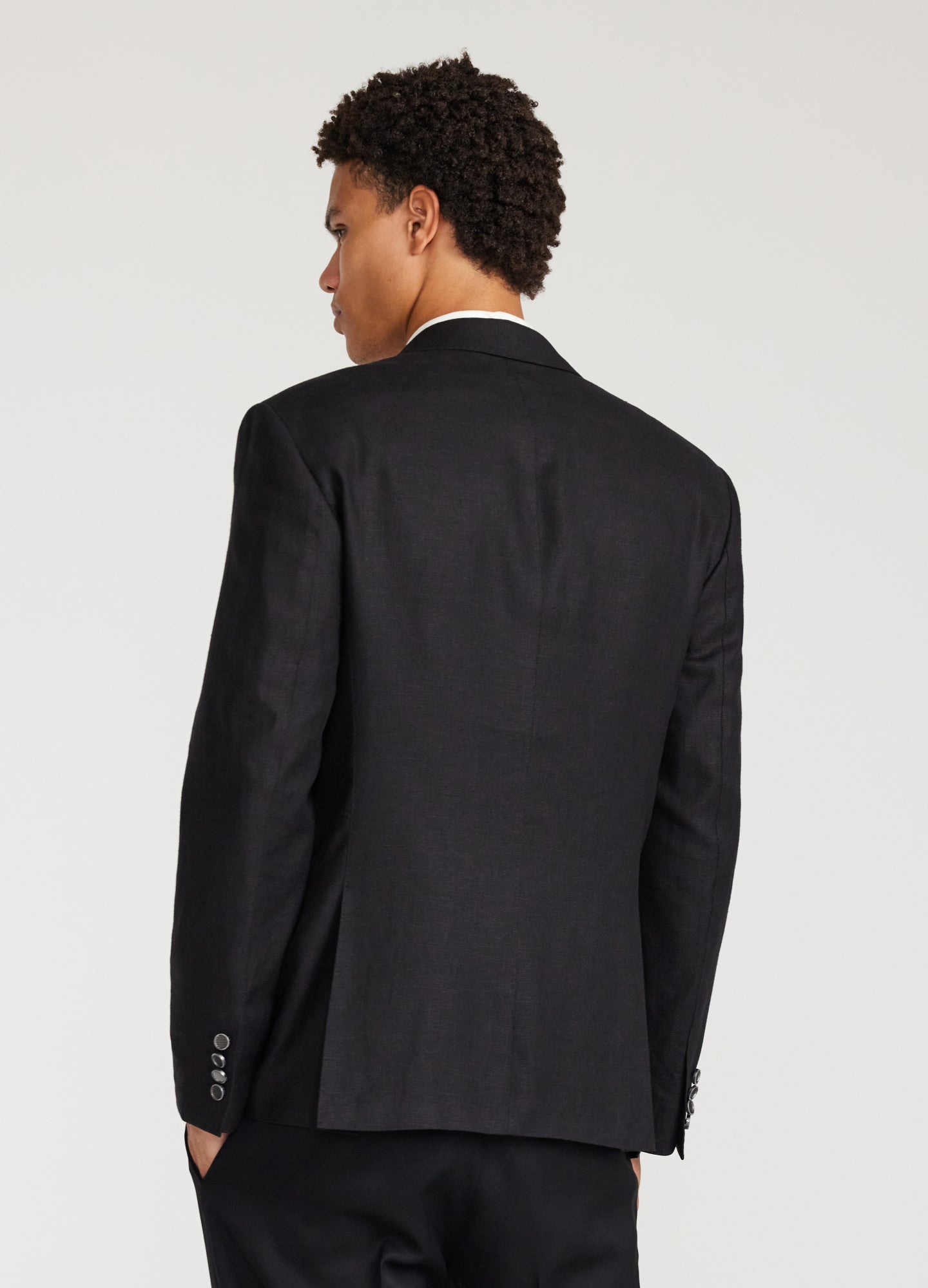 Linen Wool Hopsack Blazer Black