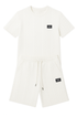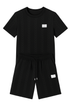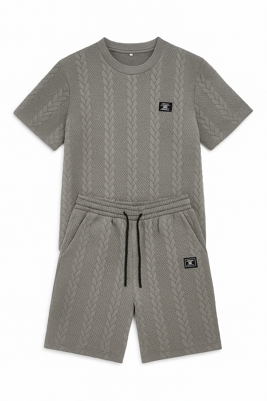 Discover the perfect blend of comfort and style with this woven summer set. The set includes a t-shirt and shorts made from soft, breathable fabric with an elegant woven texture – ideal for warm days. Its minimalist look, structured details, and a subtle front logo make it a great choice for both lounging at home and stepping out in style.